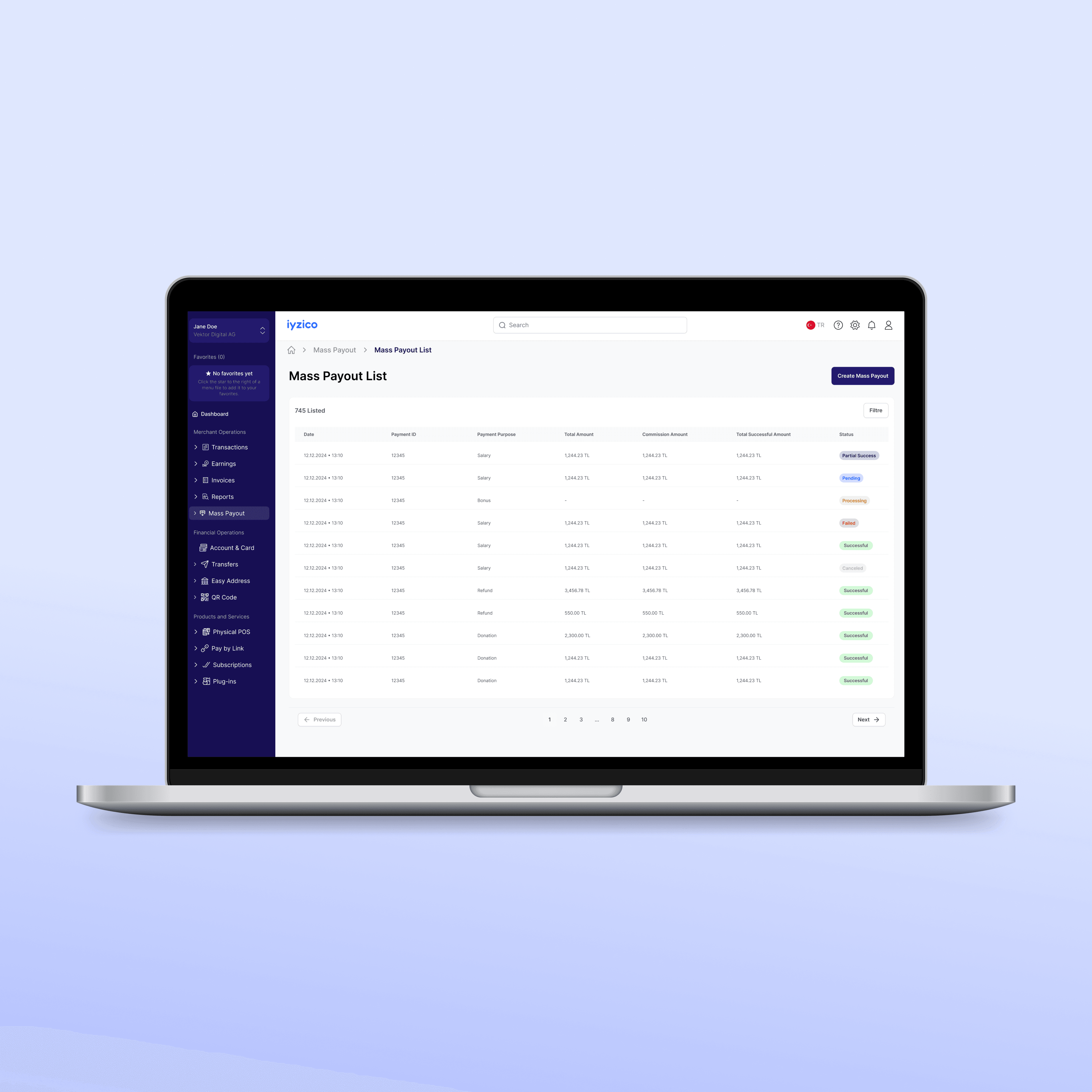 A bulk payment solution enabling merchants to send refunds, salaries, or partner payouts at scale.